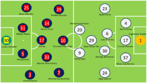 As Paris Saint-Germain set up a defensive block, Palmer slowed his advance and turned his body to face Beraldo directly.Naturally, at the exact moment that Beraldo turned his body towards Palmer, Joao Pedro made a diagonal run behind Belaldo, getting behind the Paris Saint-Germain defensive line and allowing Palmer to play a through ball.