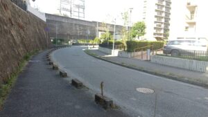 「JR川西池田駅前交差点」からJR川西池田駅に背を向けて北を向き、住宅街の中を進みます。