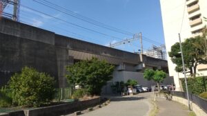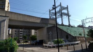暫く歩くと阪急宝塚線の高架が見えてきます。